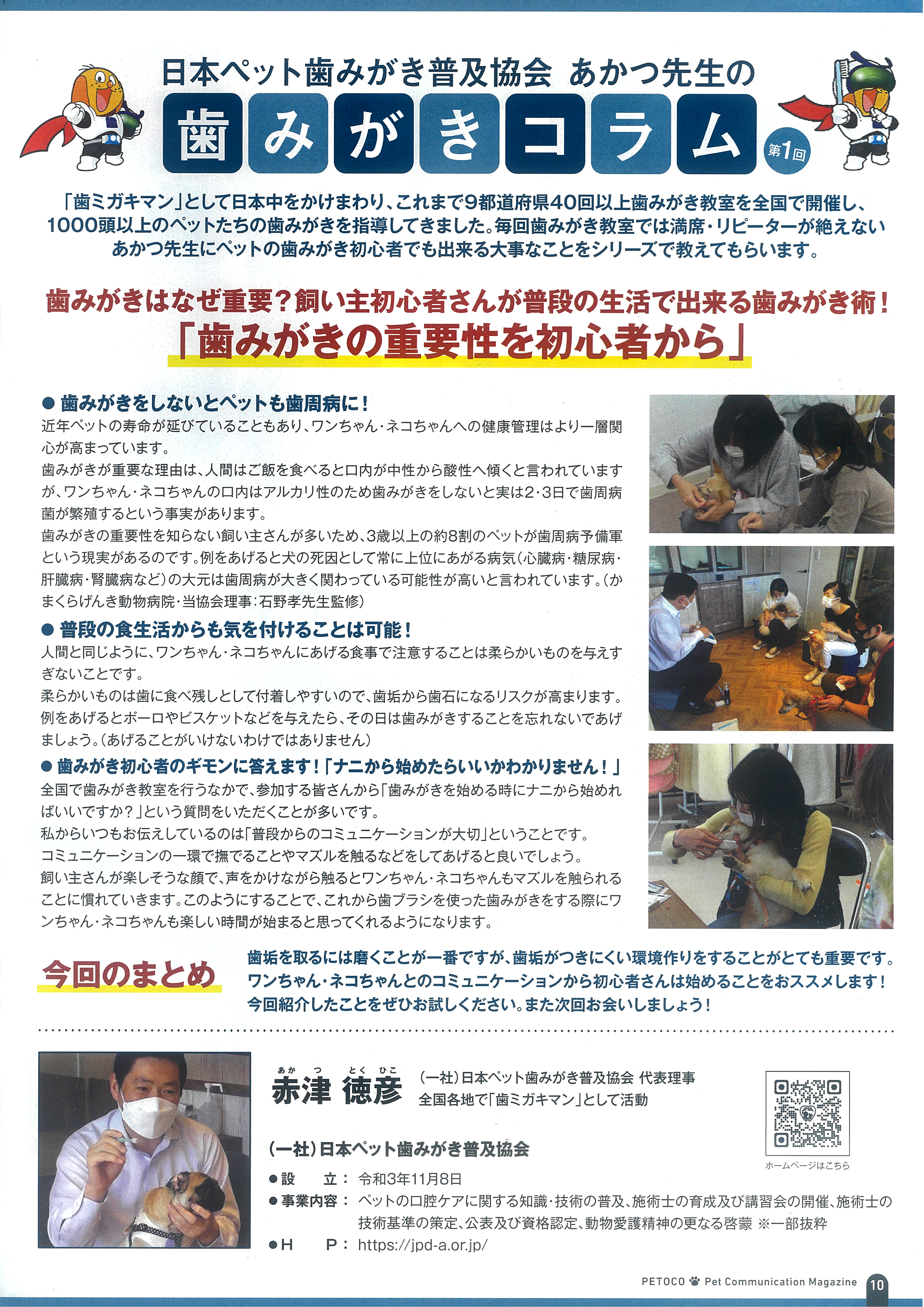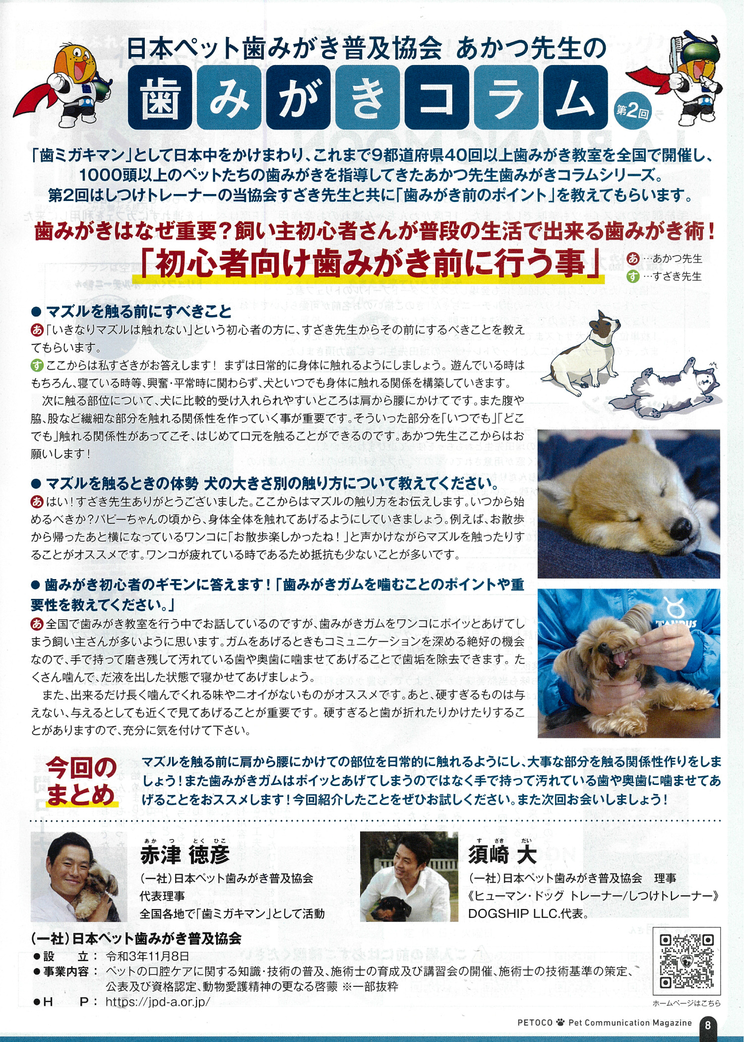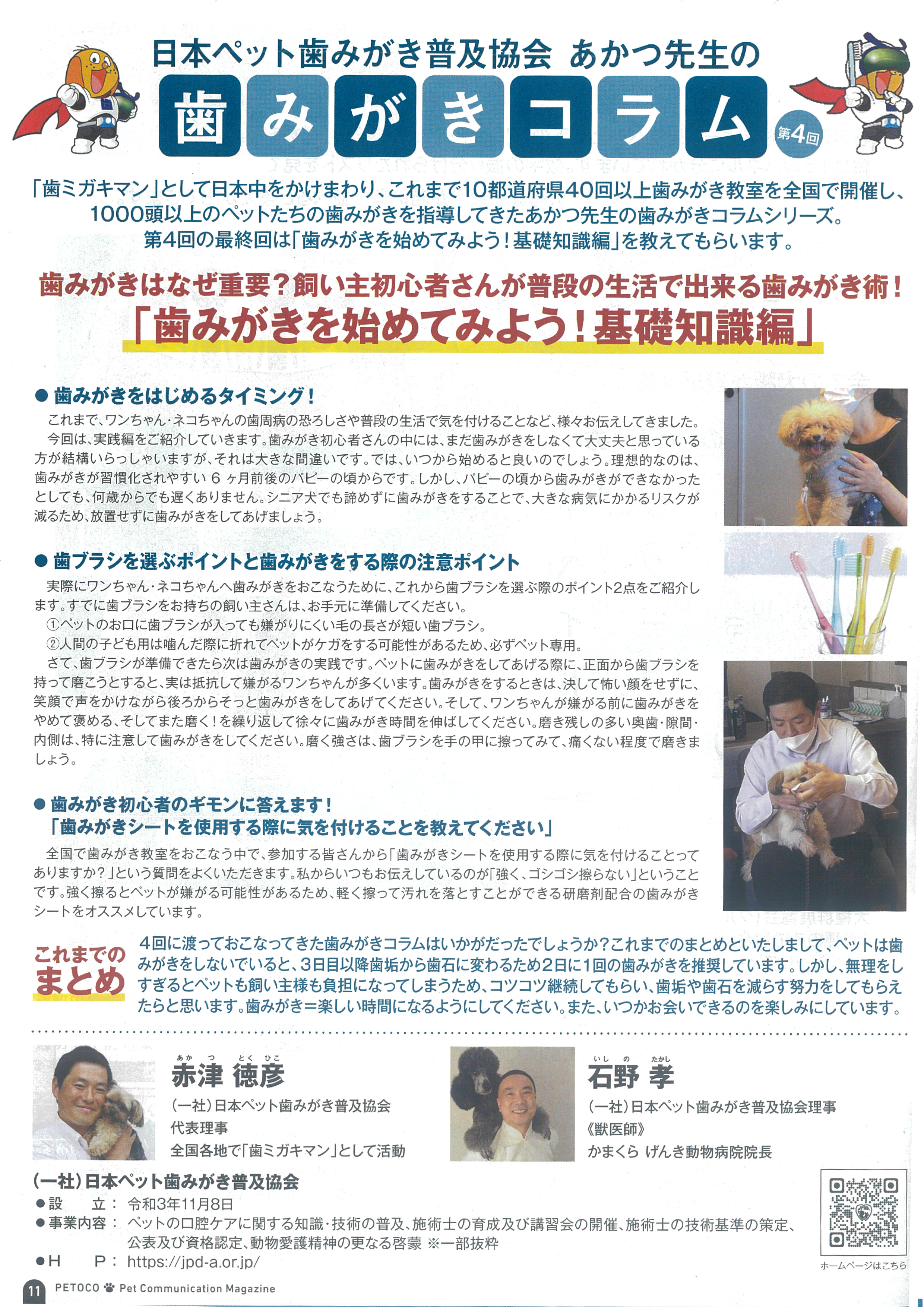 北海道のペット専門店『ペットランド』様が発刊するフリーペーパー『PETOCO』Vol.115に『第四回 歯みがきコラム』が掲載されました。